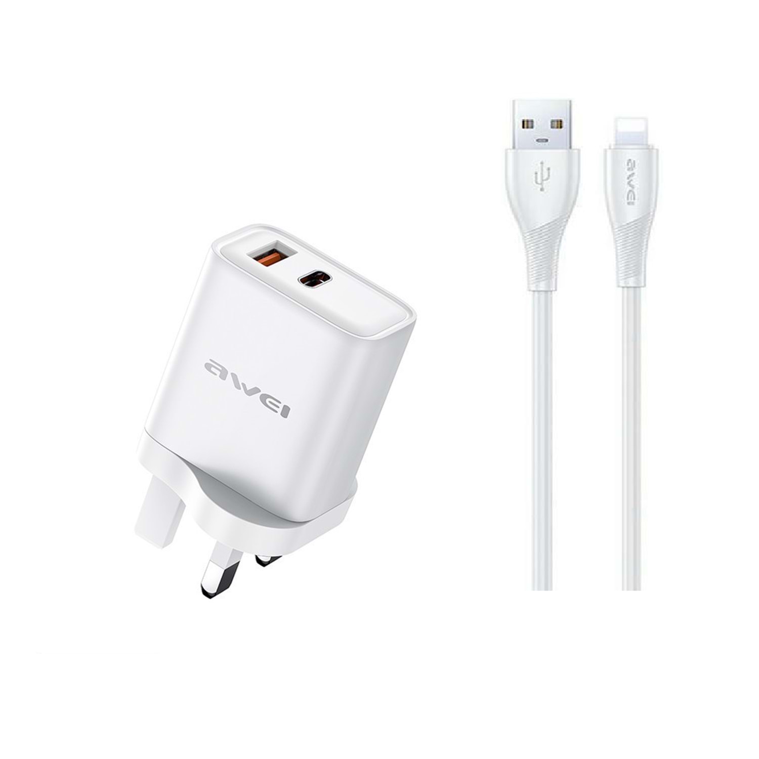 Adaptor Awei PD81L-UK USB USB-A & USB-C Lightning Beyaz